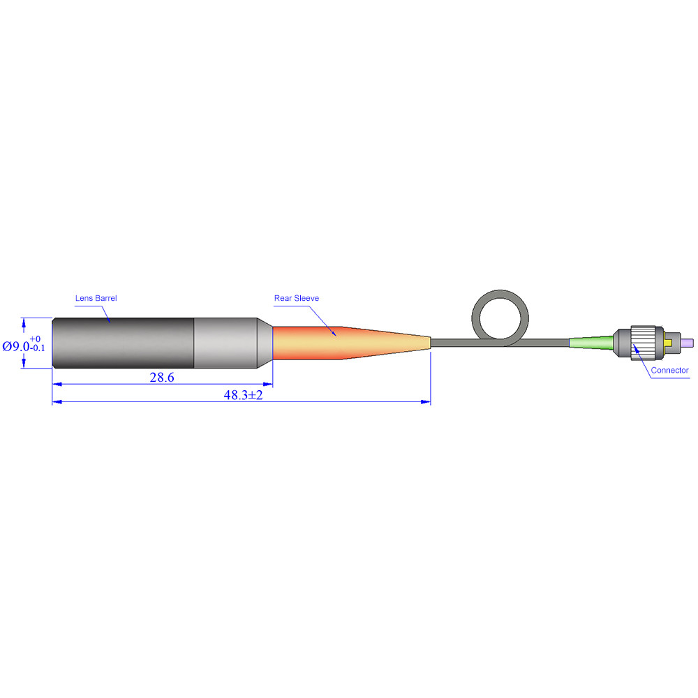 ●Collimator dài tiêu cự ngắn, nơi độ lệch chùm phát ra từ đuôi sợi góc là không đáng kể, có thiết kế lồng thẳng.
